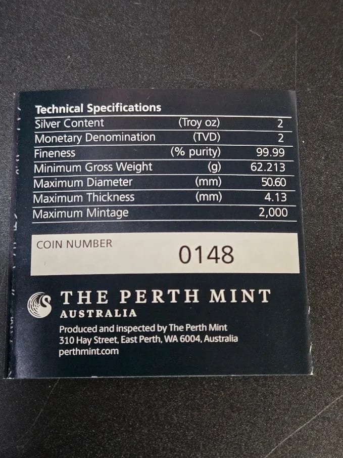 Weight: 2 oz .9999 Fine Silver