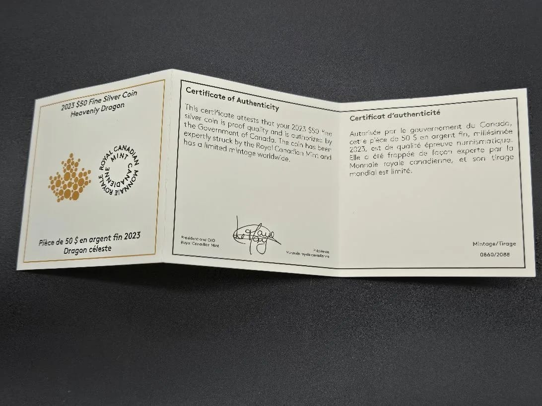 Each coin carries a face value of $50 CAD and comes presented in a luxurious red lacquered wood case with a certificate of authenticity. With a worldwide mintage of only 2,088 pieces, the Heavenly Dragon is a symbol of strength, wisdom, and good fortune—an extraordinary addition to any premium coin collection.