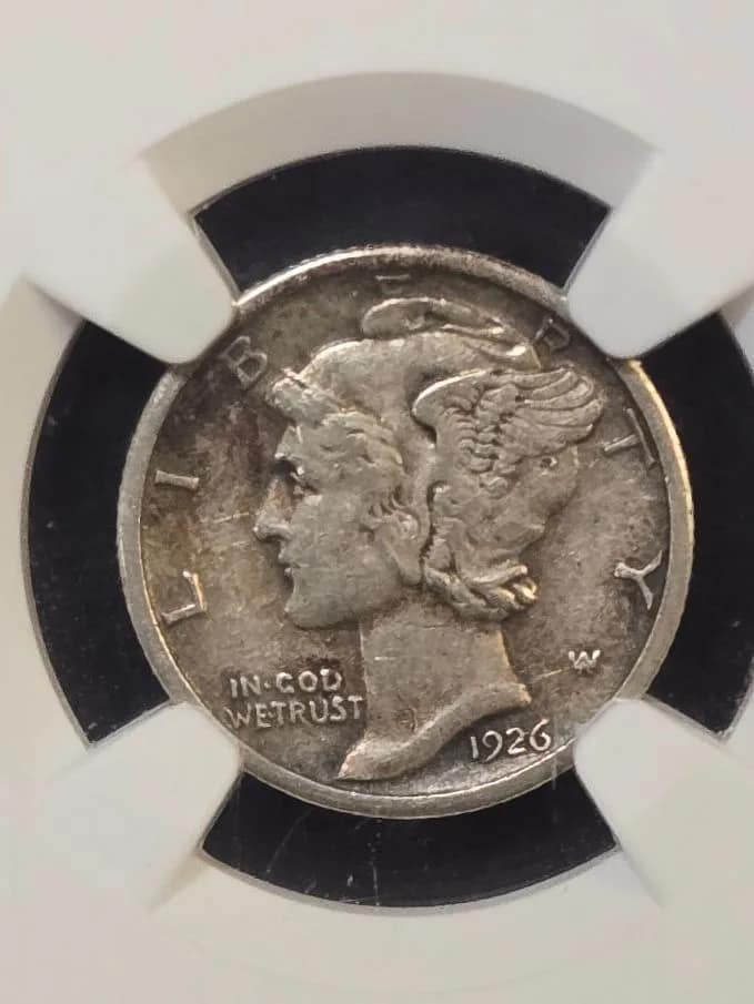 + Free ShippingEnhance your collection with this 1926-S Mercury Dime, graded XF45 by NGC. Struck at the San Francisco Mint, this classic dime features the iconic Winged Liberty Head design symbolizing freedom of thought.