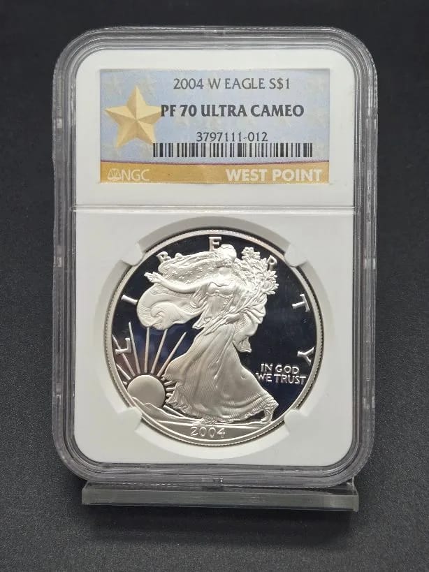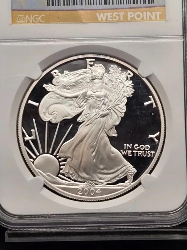+ Free ShippingThe 2004-W Proof American Silver Eagle is a stunning collector version of the United States Mint’s official silver bullion coin. Struck at the West Point Mint, this proof issue features exceptional detail with frosted design elements and deeply mirrored fields.
