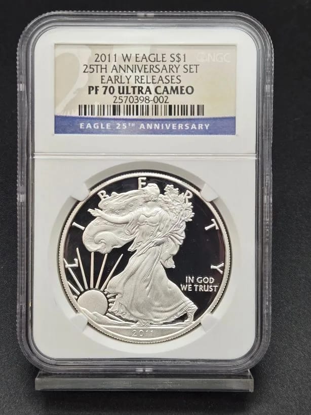 + Free ShippingThis exceptional 2011-W Proof American Silver Eagle was struck at the West Point Mint and certified by NGC in perfect PF70 Ultra Cameo condition, the highest grade possible. The Early Releases designation confirms the coin was received by NGC within the first 30 days of release, adding to its collector appeal.