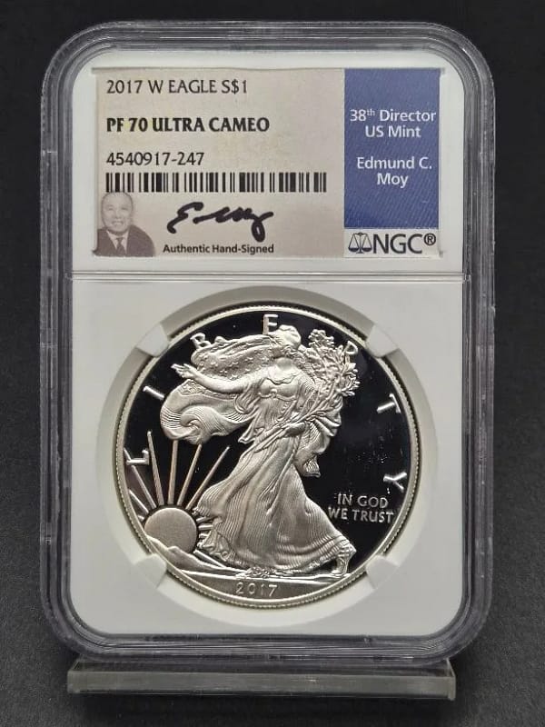 Highly sought after by collectors, PF70 Ultra Cameo Proof Silver Eagles combine precious metal content with top-tier numismatic quality.