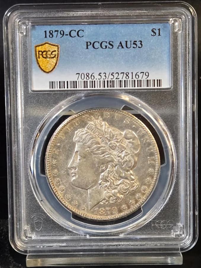 + Free ShippingThis 1879-CC Morgan Silver Dollar is graded AU53 by PCGS, showing strong detail with moderate circulation wear. The 1879-CC is one of the scarcer Carson City issues, with a relatively low mintage compared to other years. Highly sought after by collectors, this coin combines historic appeal with the prestige of the Carson City Mint.