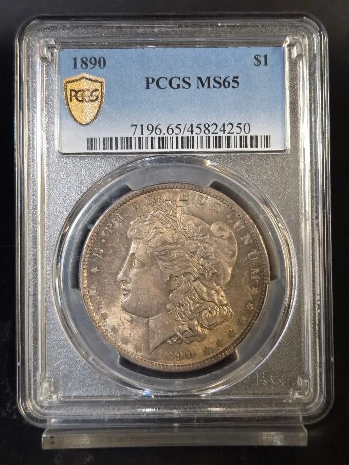 + Free ShippingThe 1890 Morgan Silver Dollar, certified MS65 by PCGS, is a stunning gem example of this classic series. Struck in .900 fine silver at the Philadelphia Mint, this coin offers brilliant luster, sharp details, and excellent eye appeal. With its gem-grade designation, it represents both beauty and lasting value for collectors of U.S. coinage.