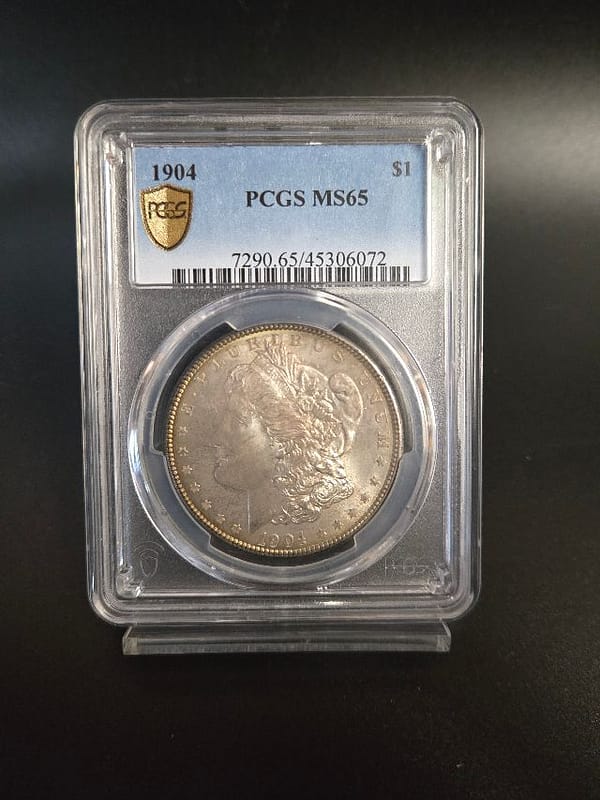 The 1904 Morgan is prized for its historical significance, and in MS65 condition, it is especially desirable due to its lustrous surfaces, strong strike, and minimal contact marks. High-grade examples like this one stand out in any collection.