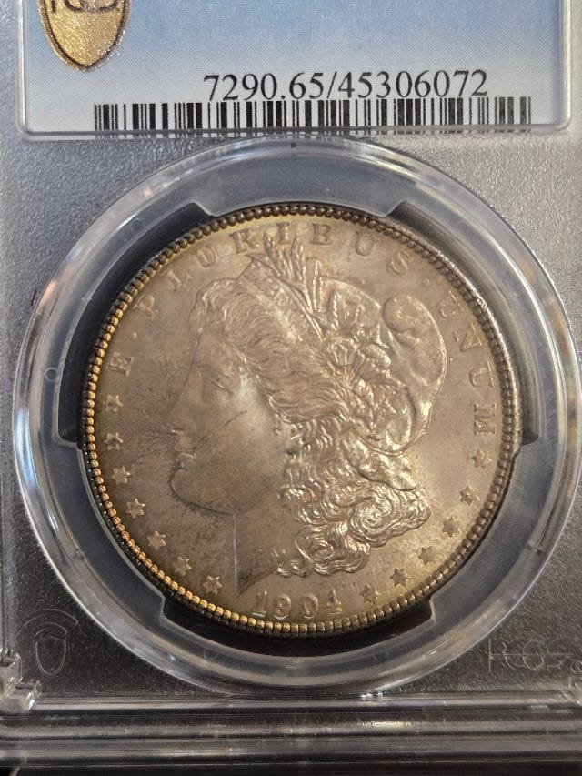 + Free Shipping1904 Morgan Silver Dollar, certified Mint State 65 (MS65) by PCGS.