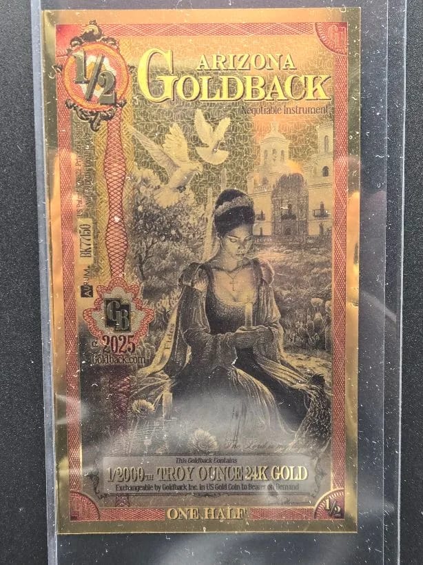 The 2025 1/2 Arizona Goldback is an excellent addition to any Goldback collection or for those looking to acquire small fractional pieces of physical gold.