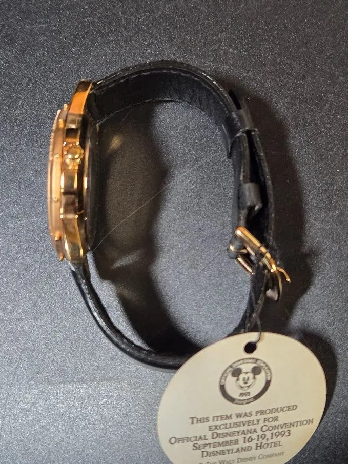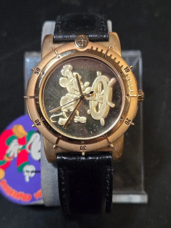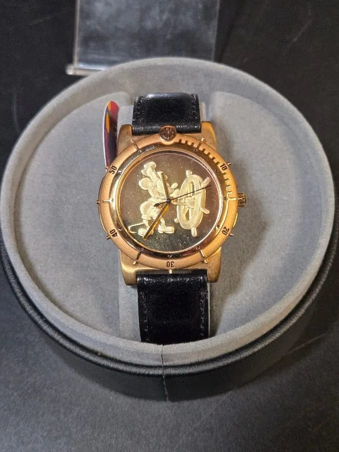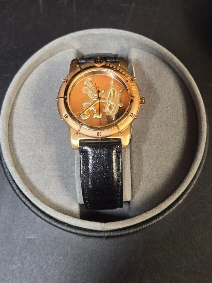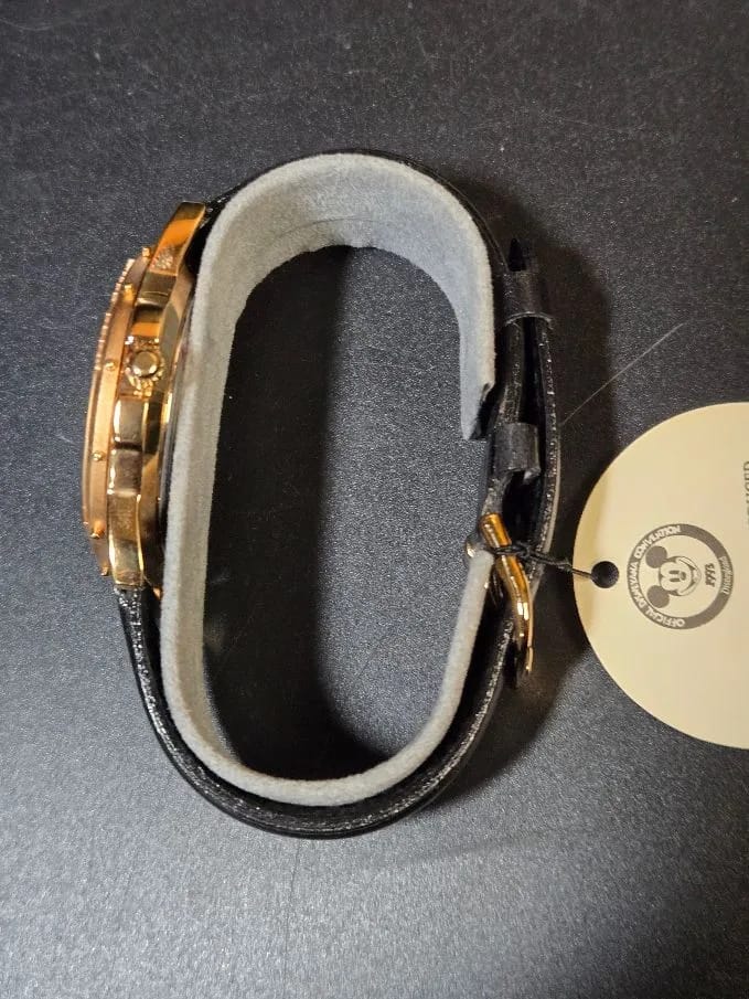 + Free ShippingThis stylish Mickey Mouse wristwatch combines timeless Disney charm with a classic design. Featuring a gold-tone case, clear dial with Mickey’s iconic silhouette, and a black leather strap, this watch makes a perfect collectible or everyday accessory. Whether you’re a Disney fan or a watch enthusiast, it adds both fun and sophistication to any collection.