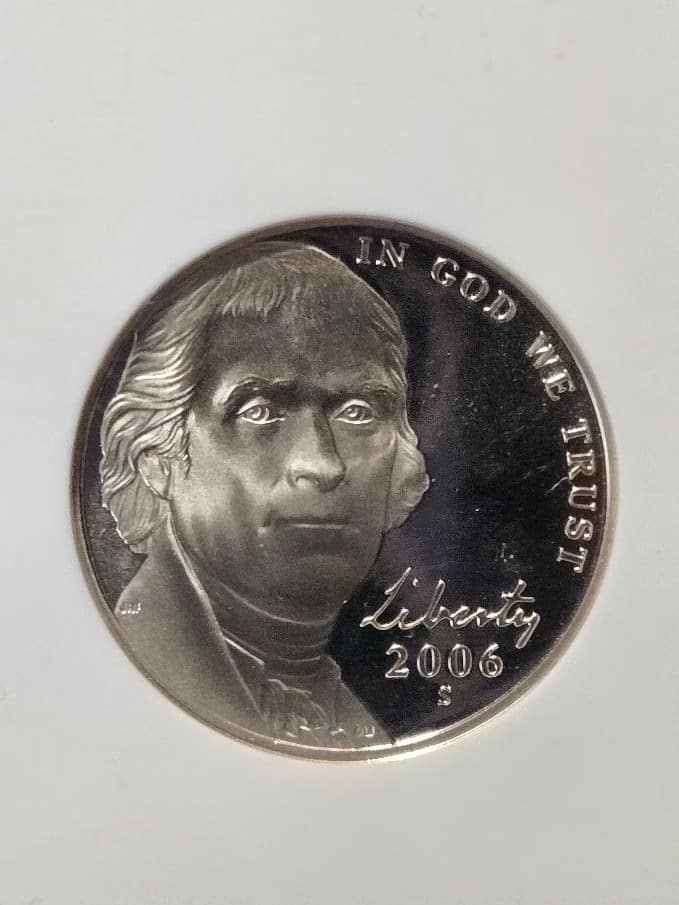 The 2006-S Jefferson Nickel, graded PF70 Ultra Cameo, is a high-quality proof coin produced at the San Francisco Mint.