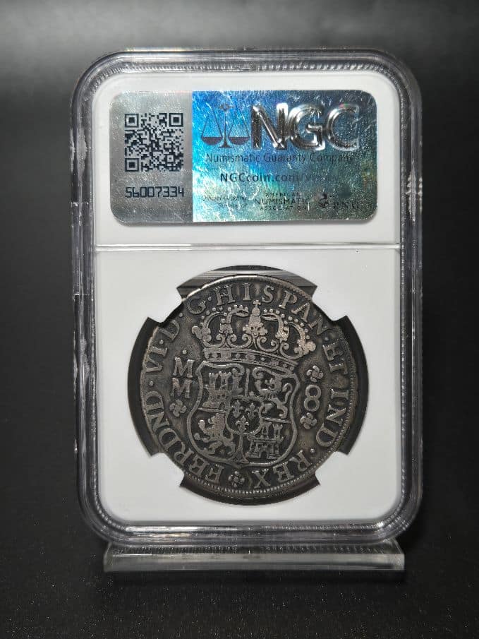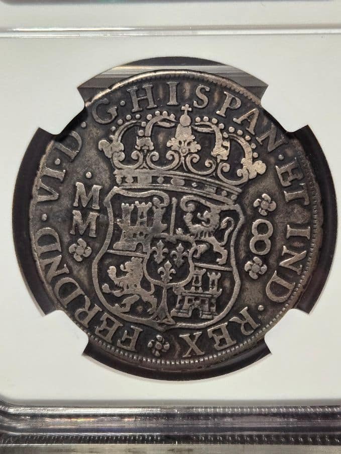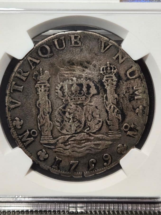 + Free ShippingThe 1759MO MM Mexico 8 Reales coin with a “VF Details OBV Scratched” designation is a historically significant Spanish colonial silver coin, often referred to as a “Piece of Eight”.